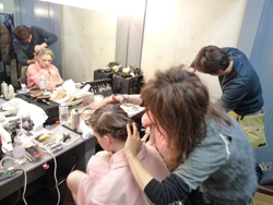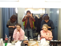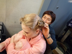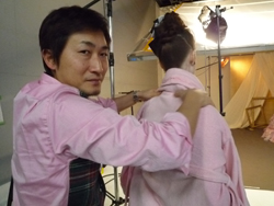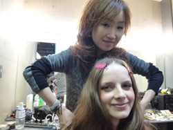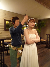 さっそくヘアメイクにとりかかる宅間さん