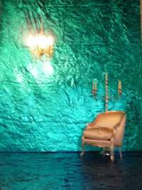 そして二つ目がアップスタイルにオレンジとグリーンのターバンを巻いているんですけど、この巻き方が意外にむずかしく、宅間さんを始め、スタイリストの方々と思考錯誤してやっと決まったスタイルなんです。