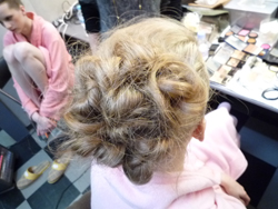 ヘアは一つに束ねてねじりどめ