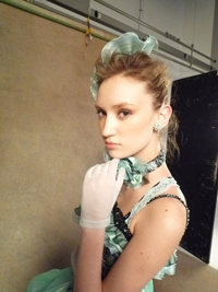モデルのYULIAです。超可愛いと思います!!今日のイメージはインポートドレスです!!モデルちゃんの肌質もわざとツヤツヤの質感にしあげました。ライトが当たるとよりシャイニ―に光ります、きれいですね