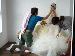 ドレスの数も十着でモデルさんも一人ということで、いつもの撮影よりは段取りよく何とかうまく運びました。