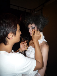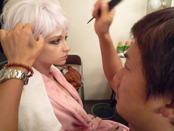 モデルのエレンです。メイクも少し濃いめのブラックをのせて。。。撮影開始です