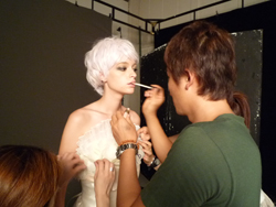 お次は、エレガントということで少しシャープにメイクアップ