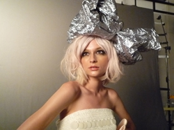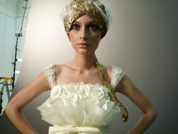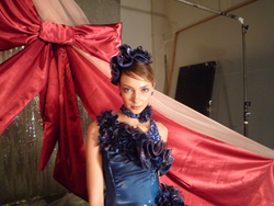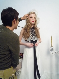 、続いてエレガント、スタイリッシュの四つのテーマに基づいて作品をつくります。ほんとにお人形さんみたいな今回のモデルは、ベロニカ