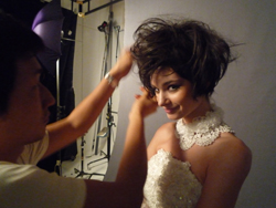 イメージ撮影ではこんなふうに倒れたポーズやウィッグを使ったスタイル撮影でした。