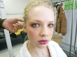 メイクも少し濃くして、強さとセクシーさをプラスして。。。よく見ると、すごく長い付けまつ毛をつけてるんですが、さすが外人モデルさん、なじみがいい
