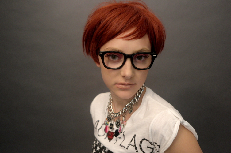 ボブのウィッグをかぶり、スカーフもつけて。。。