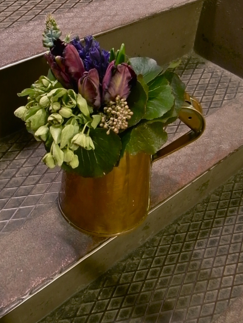 中央のバラみたいな緑色の子は、ラナンキュラスって名前らしいです